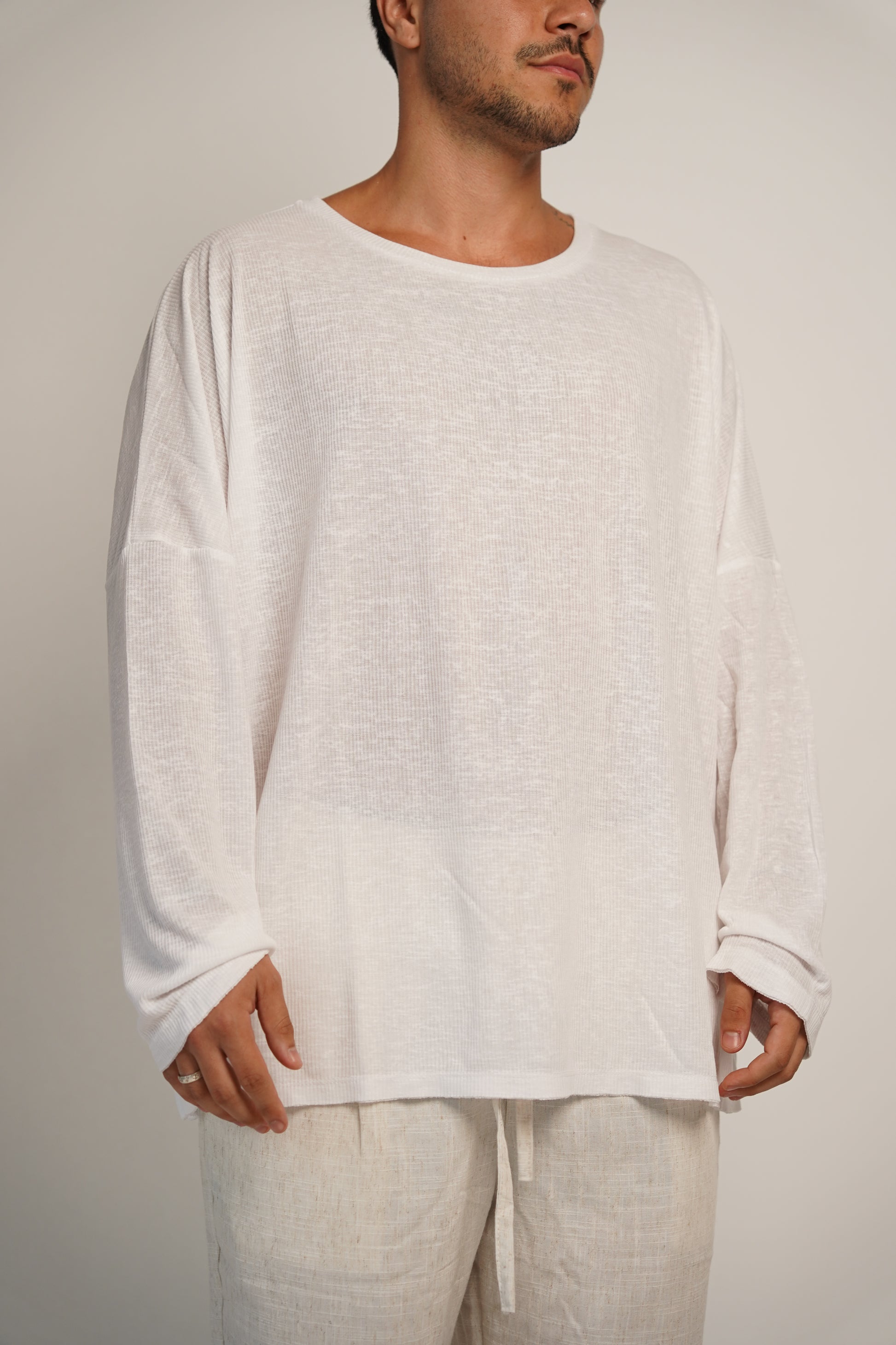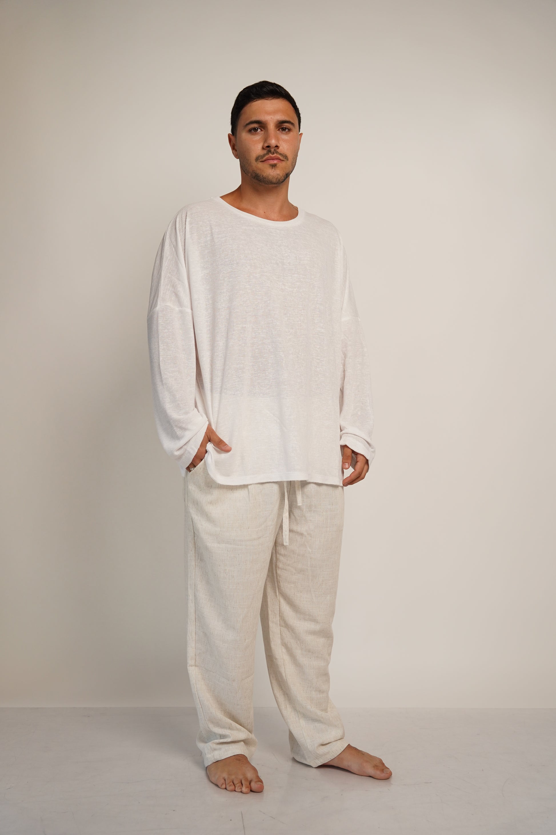 חולצת שרוול ארוך, מבד פשתן, צווארון פתוח במראה גזור